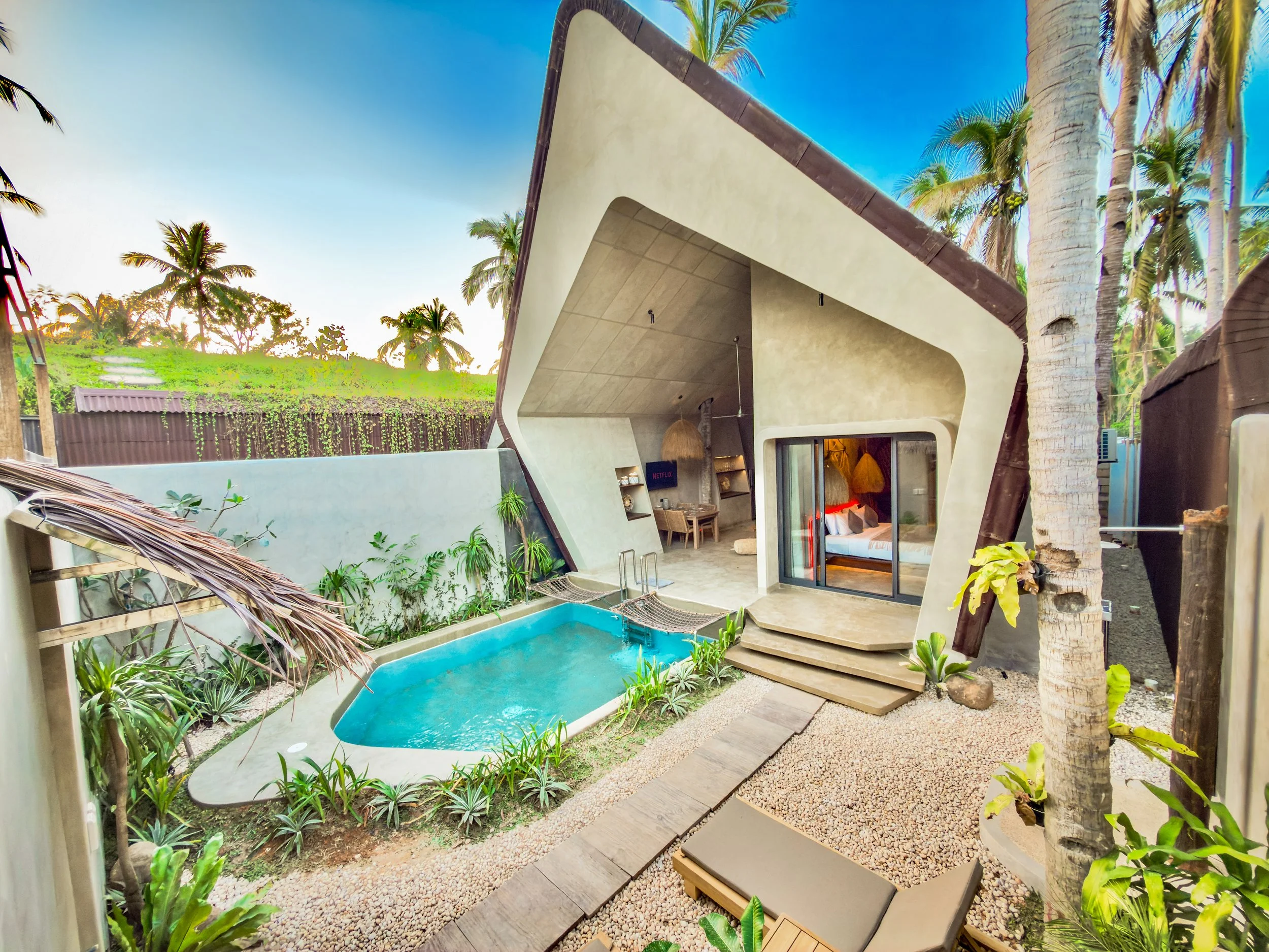 Designed with sustainability and comfort in mind, each Diwatu Earthen villas features a living green roof that blends harmoniously into the surrounding jungle, naturally cooling the space and promoting a serene atmosphere.